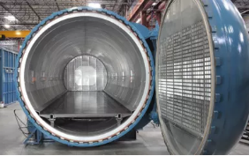 熱壓罐的典型固化成型系統(tǒng)包括熱壓罐罐體、控制系統(tǒng)、電氣系統(tǒng)、氣體制備系統(tǒng)和真空系統(tǒng)。在罐體部分中,罐蓋的啟一般使用快開(kāi)裝置來(lái)實(shí)現(xiàn)。