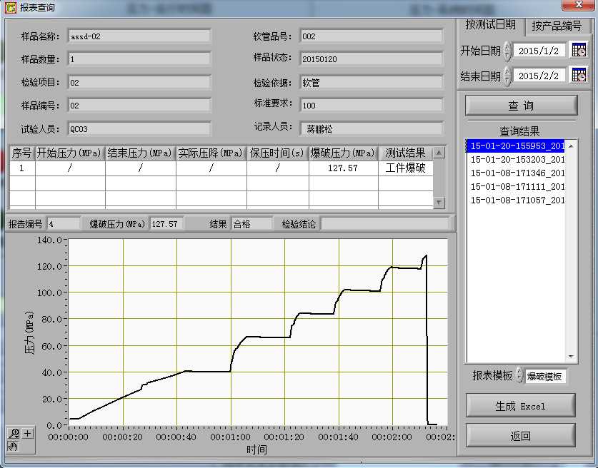 階段二:設(shè)定壓力1.5Mpa,保壓10分鐘;